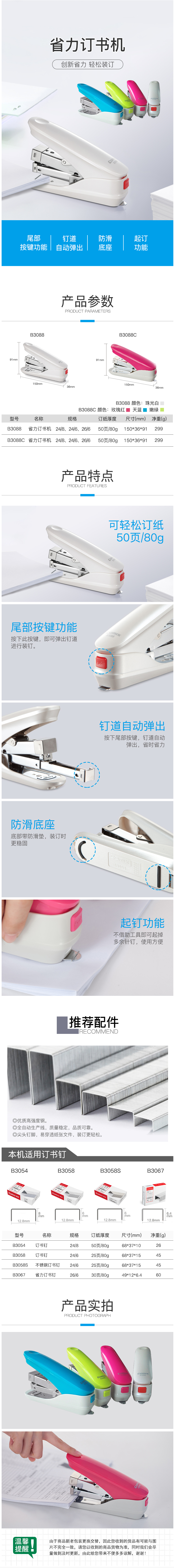 商品名称:齐心 B3088 省力订书机