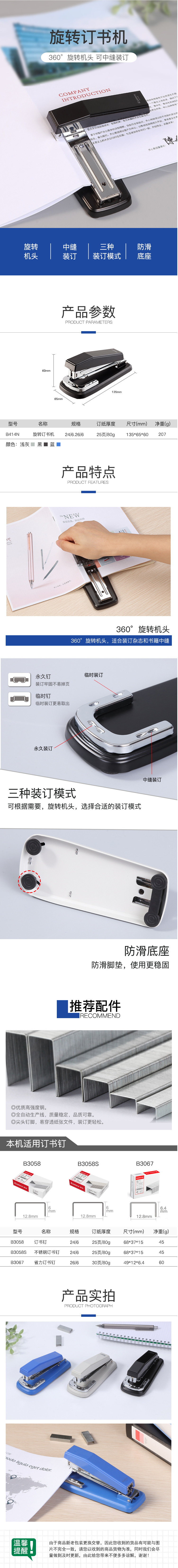 商品名称:齐心 B414N 旋转订书机 12#金属机