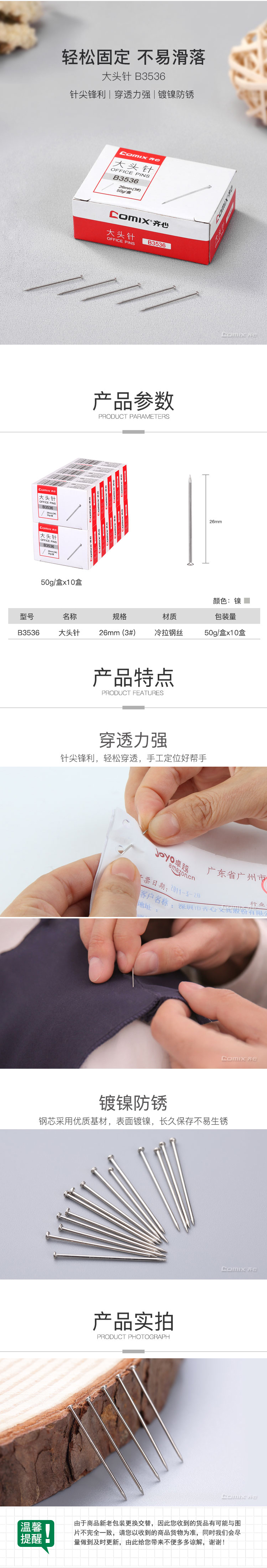 商品名称:齐心 B3536 强力大头针