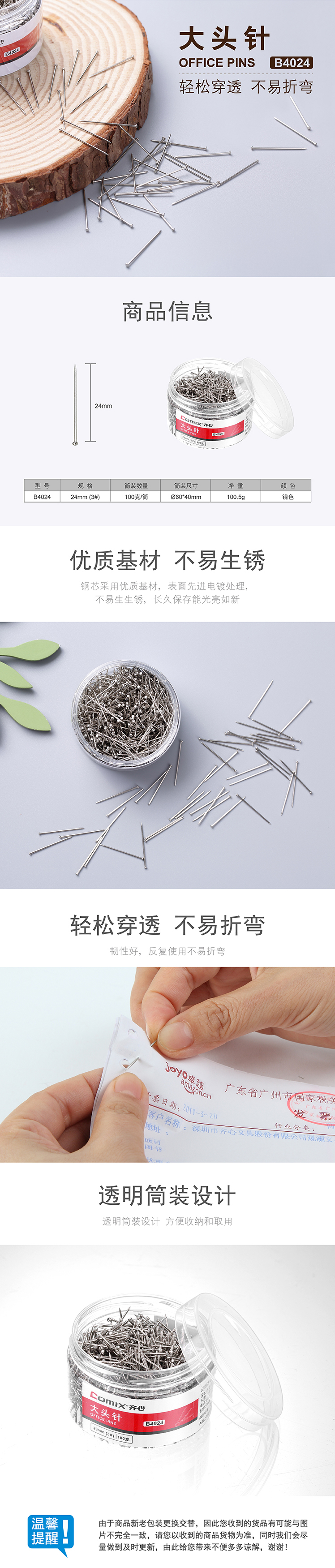 商品名称:齐心 B4024 大头针 (3# 26mm)