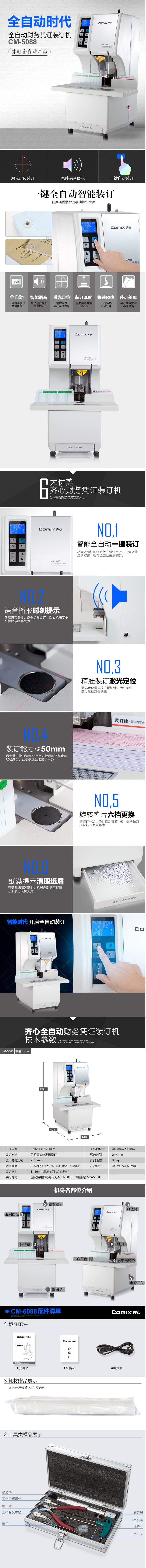商品名称:齐心 CM-5088 全自动财务凭证装订机 打孔50mm