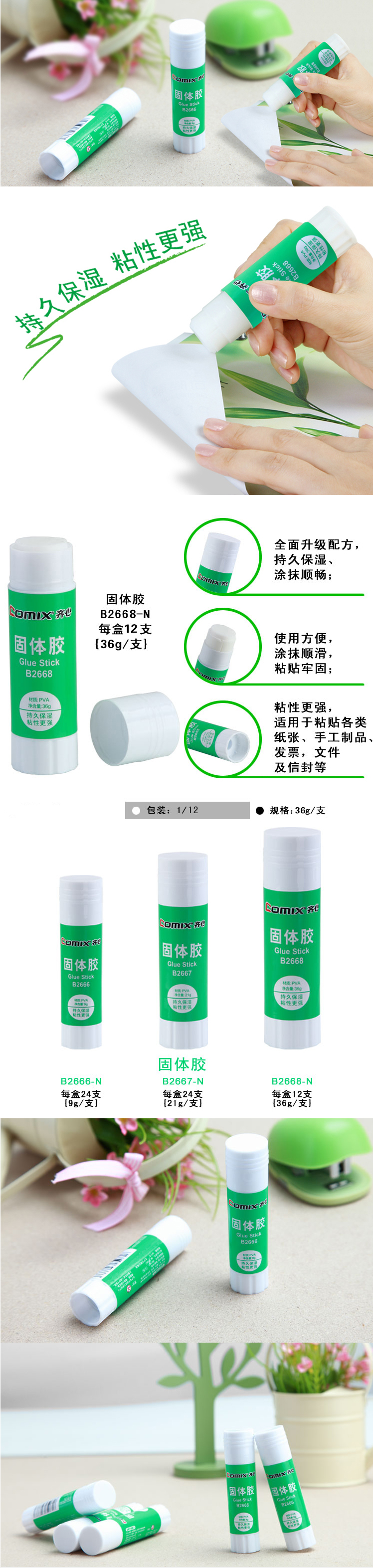 商品名称:齐心 B2668-N 固体胶PVA 36g