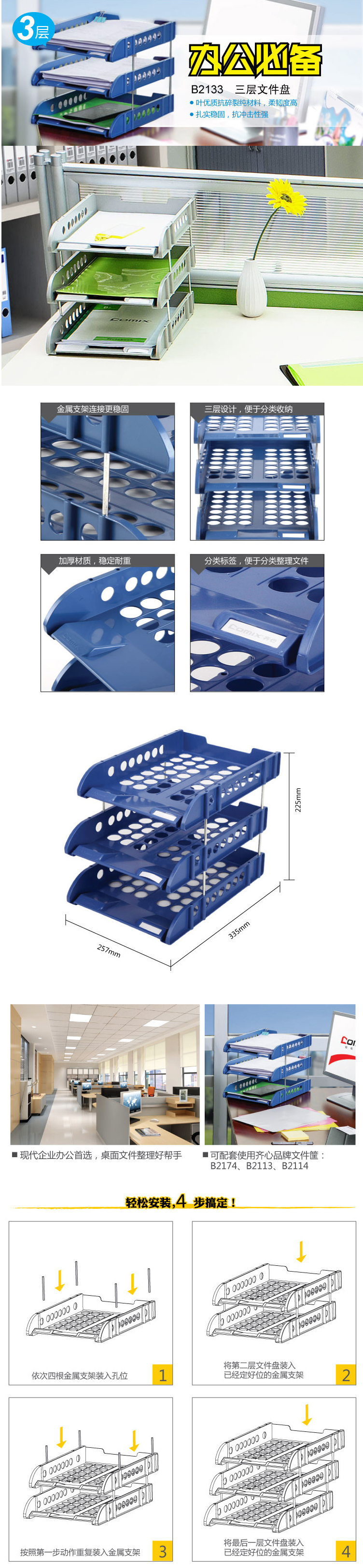 商品名称:齐心 B2133 办公必备文件盘 三层