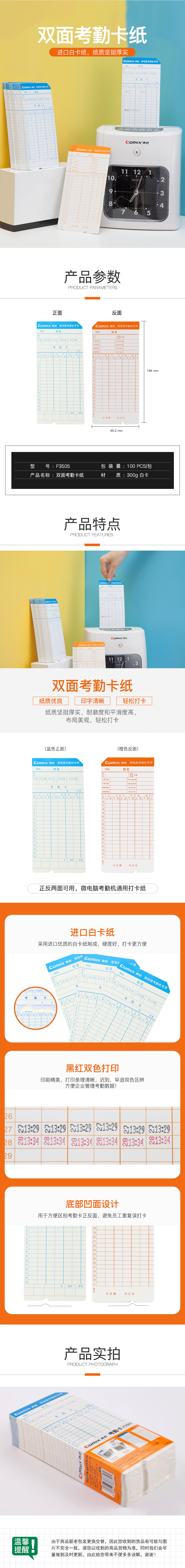 商品名称:齐心 F3505 双面考勤卡纸 300g白卡/100张/包