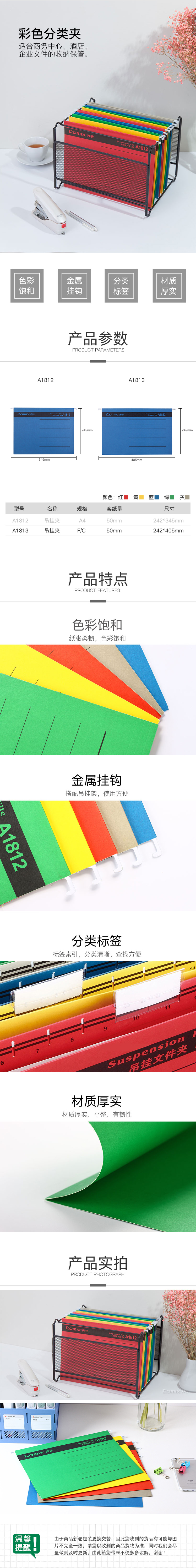 商品名称:齐心 A1813 易查找吊挂夹 F/C 纸质