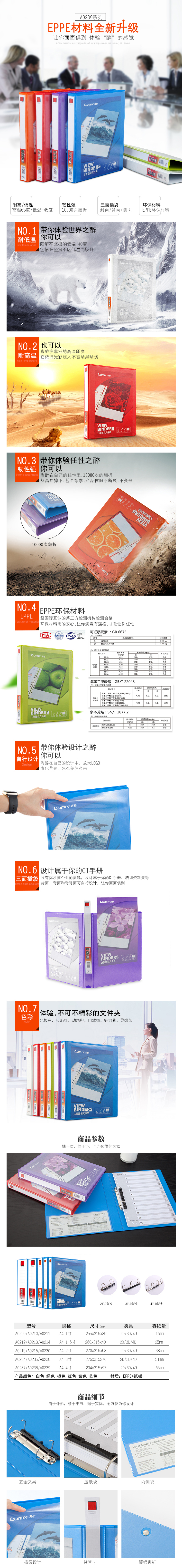商品名称:齐心 A0235 易展示 美式三面插袋文件夹 A4 3寸3孔D型夹
