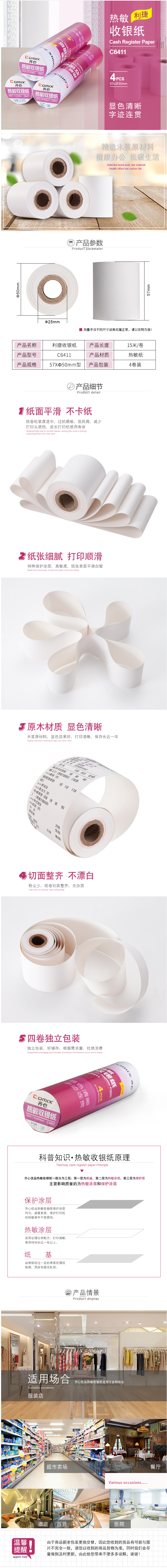 商品名称:齐心 C6411K 利捷热敏收银纸 57mm*Φ50mm (单价为1PCS价格)白