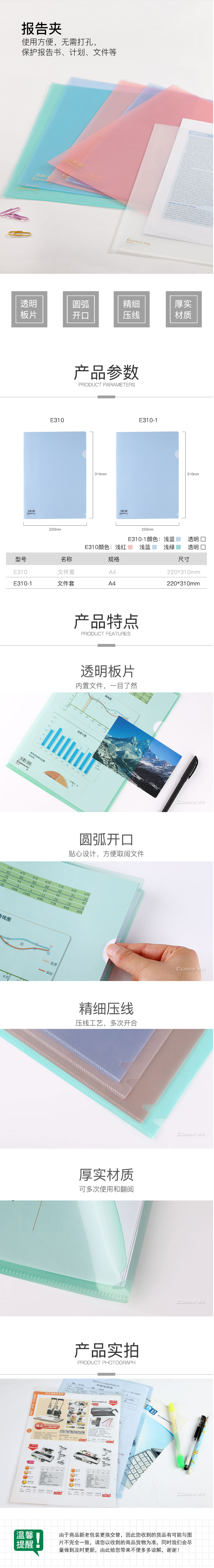 商品名称:齐心 E310-1 超省钱二页文件套 A4 100个/包