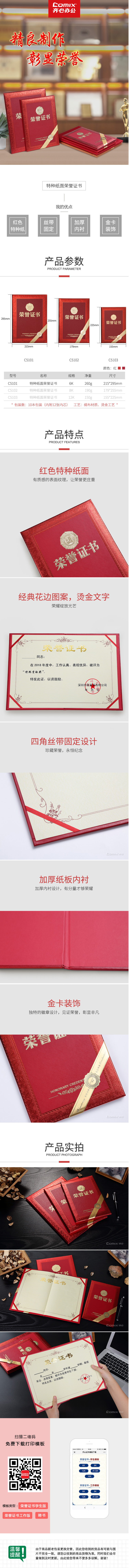 > 齐心 C5101 特种纸荣誉证书6K