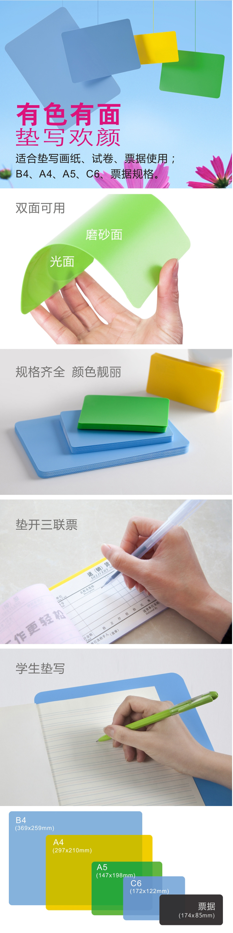 商品名称:齐心 A7773 欢颜实色复写板/垫板 A5