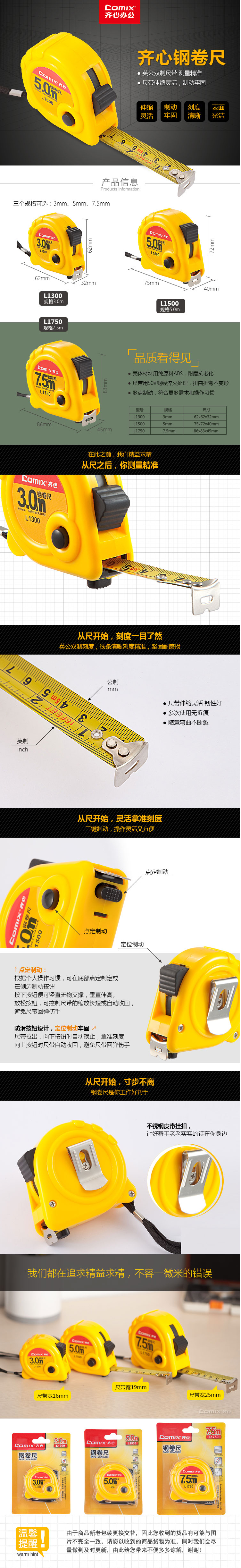 商品名称:齐心 L1300 钢卷尺 3m