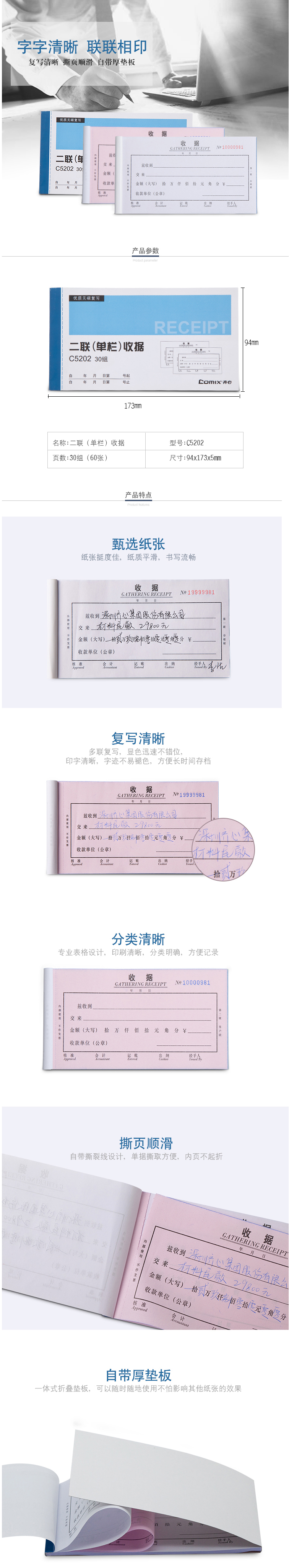 商品名称:齐心 C5202 二联单栏收据单 48K