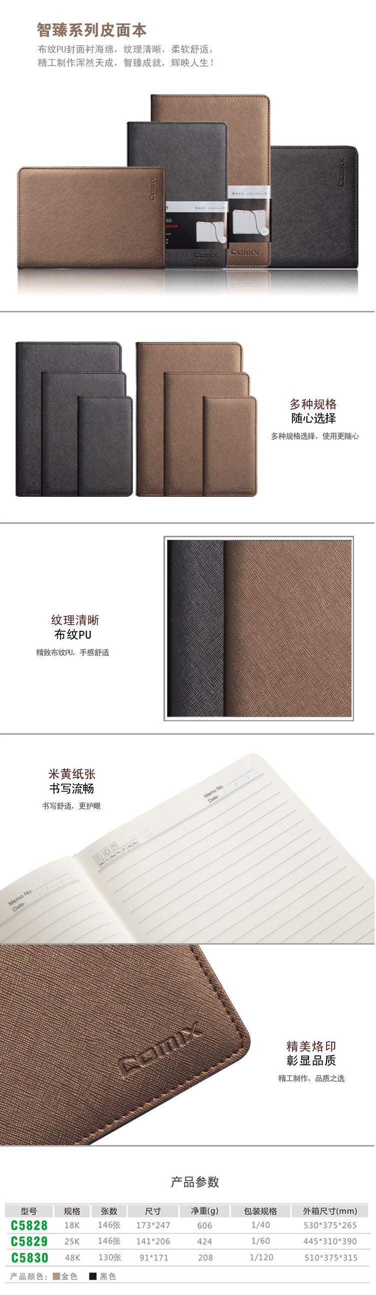 商品名称:齐心 C5829 皮面笔记本 25K 146张