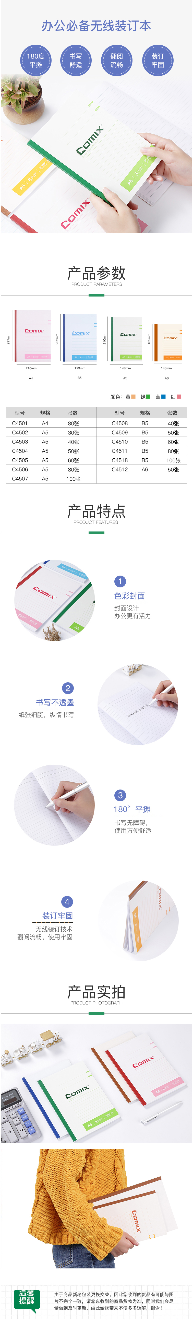 商品名称:齐心 C4504 办公必备无线装订本 A5 50张软抄本软面抄笔记本