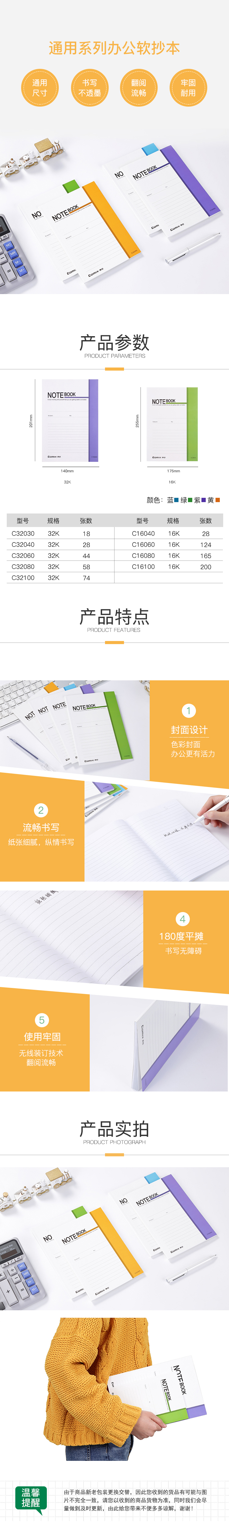 商品名称:齐心 C16080 通用系列办公软抄本 B5 58张 配笔记本软面抄
