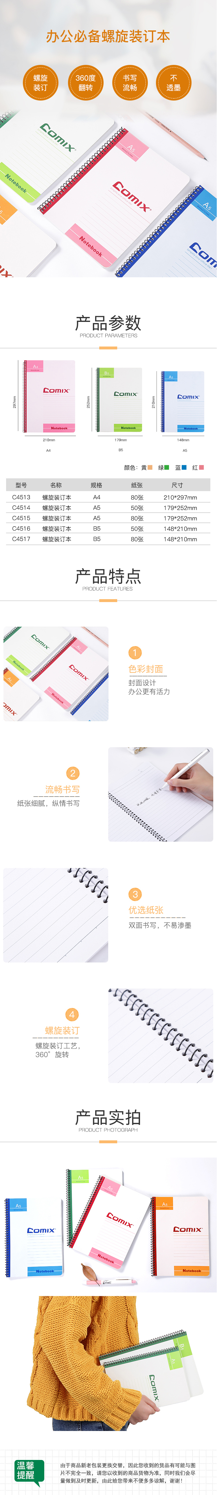 商品名称:齐心 C4514 办公必备螺旋装订本 A5 50张笔记本软抄本