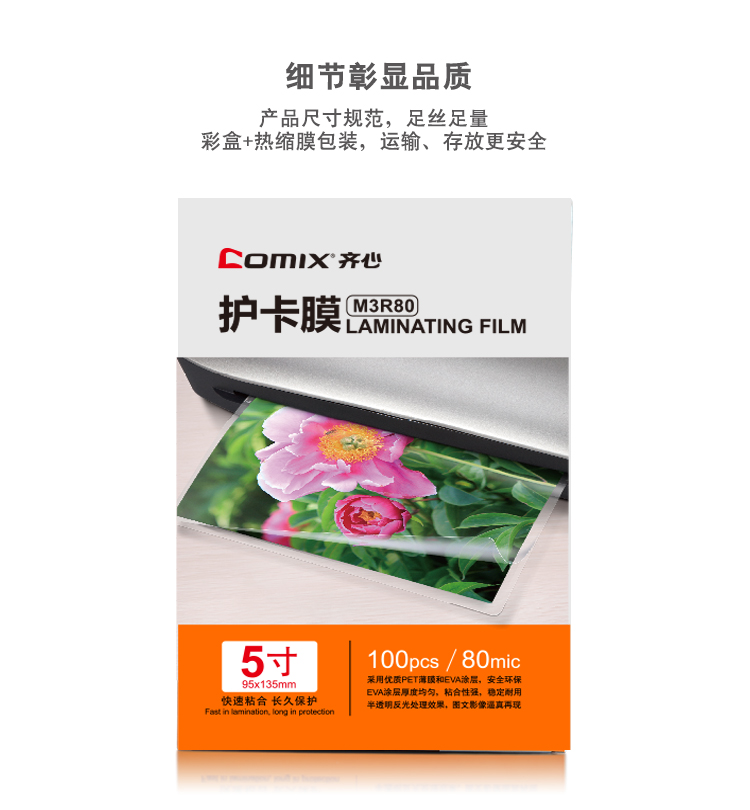 商品名称:齐心 M3R80 内销透明高清护卡膜 95*135mm*80mic
