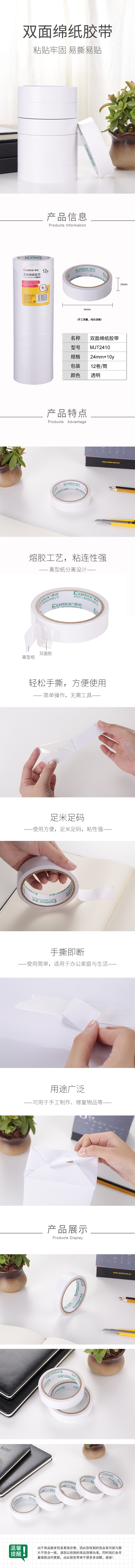 商品名称:齐心 MJT2410 双面胶棉纸胶带 24mm*10y 12卷装