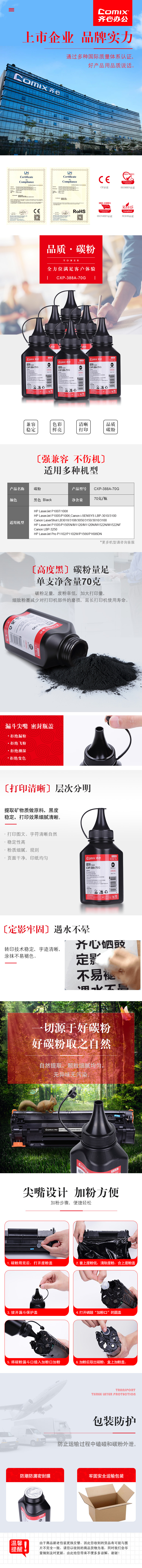 商品名称:齐心 CXP-388A-70G 碳粉/硒鼓(专业版)