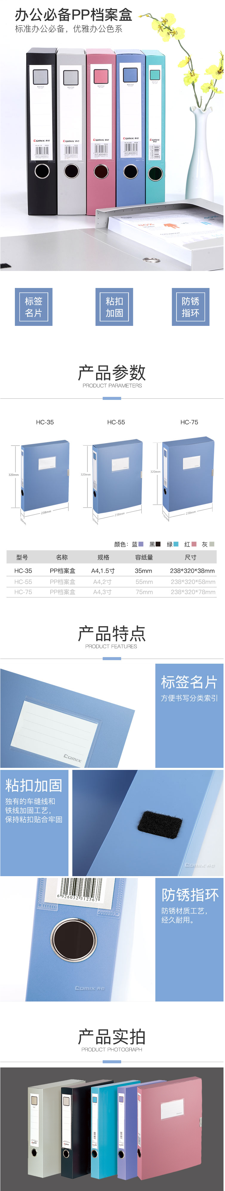 商品名称:齐心 HC-35 办公必备PP档案盒 A4 35MM