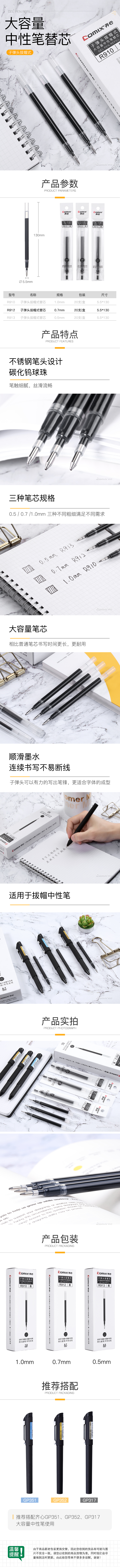 商品名称:齐心 R912 子弹头拔帽式大容量中性笔芯替芯 0.7mm